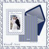 A7 Size (5"x7") card professionally printed on your choice of 120lb premium or 220lb luxury cardstock, customized with your photos and wording. Includes Euro-flap (pointed flap) envelopes in your color of choice! Envelope liners are available as an add-on and arrive fully assembled — ready to mail!